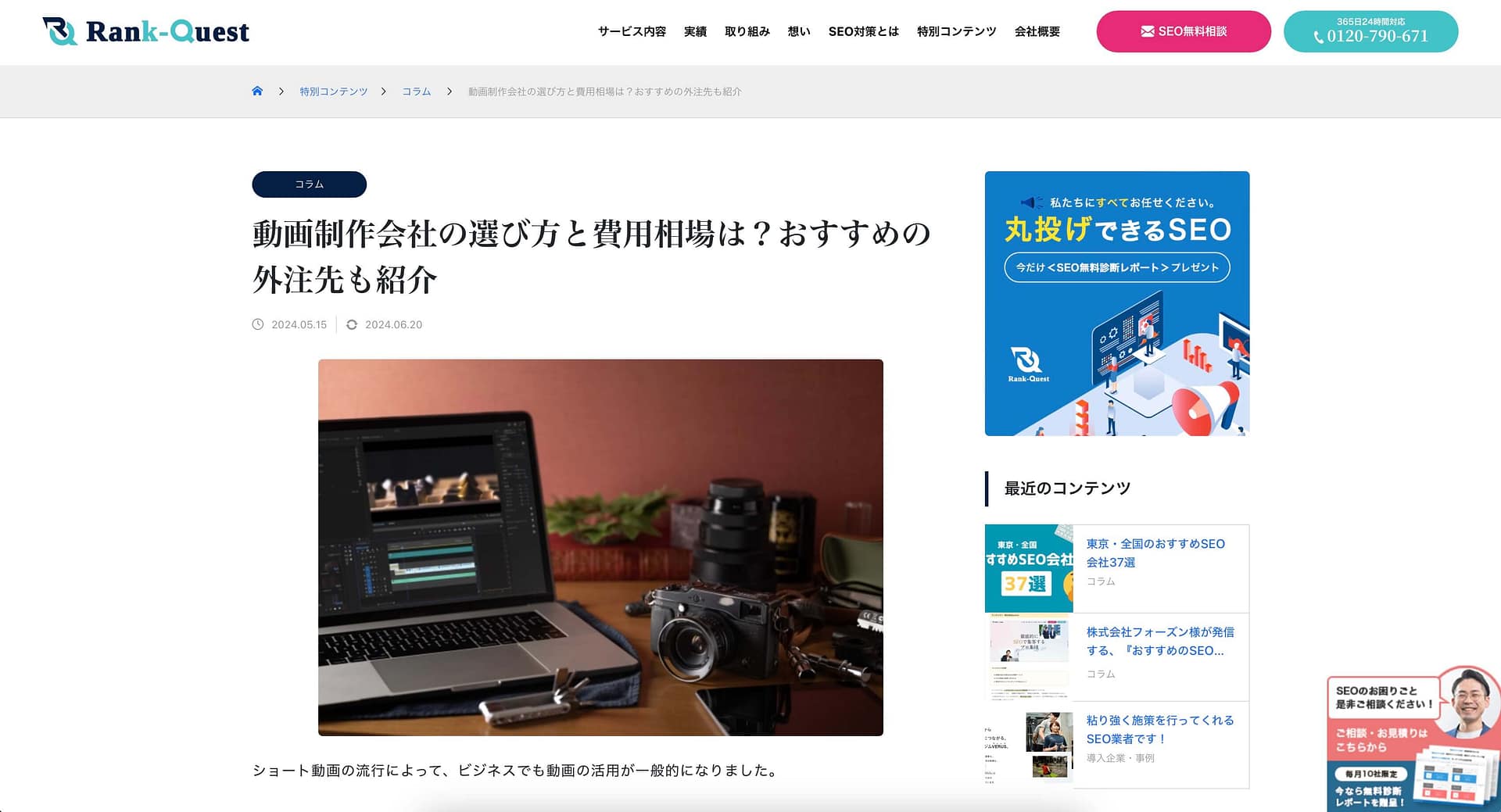 SEO支援サービス「ランクエスト」にておすすめの動画制作会社としてVIDWEBが掲載されました。