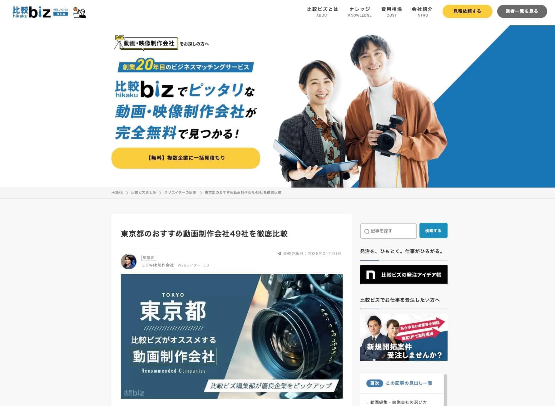 ビジネスマッチングサービス「比較ビズ」にておすすめの動画制作会社としてVIDWEBが掲載されました。